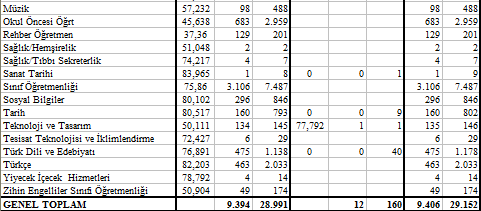 2010 yılı öğretmen atamalarına ilişkin sayısal veriler