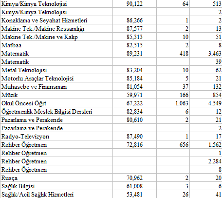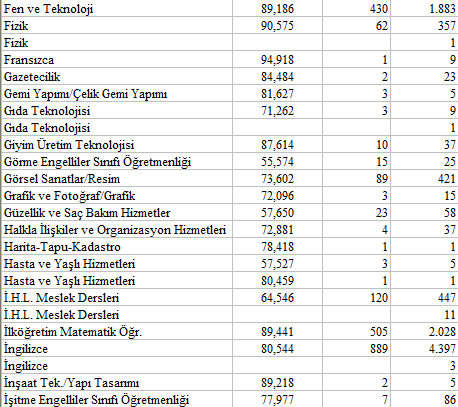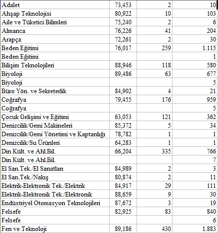 11544 öğretmenin ataması bugün yapıldı ve milli eğitim bakanlığı tarafından branş bazında oluşan minimum puanlar da ilan edildi. işte 26.08.2011 tarihli 11544 öğretmen ataması sonucu alan bazında oluşan minimum puanlar;