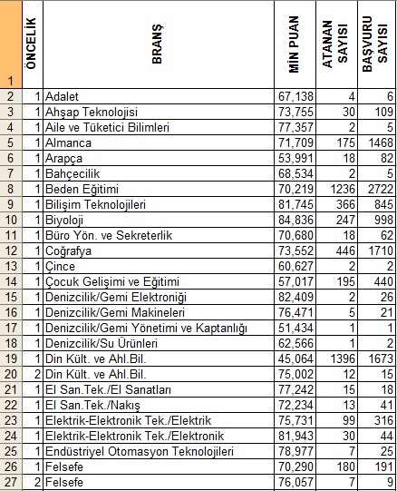 merakla beklenen branş bazında taban puanlar ve diğer istatistiksel veriler meb tarafından yayınladı;