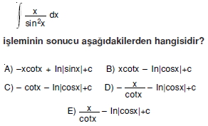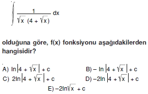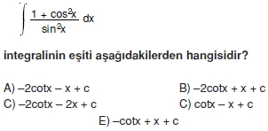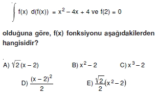 AYT Matematik – Belirsiz İntegral Soruları ( Test 4 )