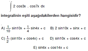 AYT Matematik – Belirsiz İntegral Çözümlü Sorular ( Test 1 )