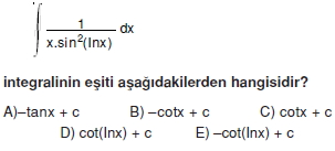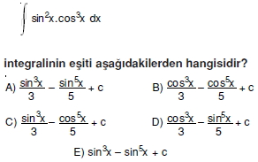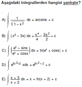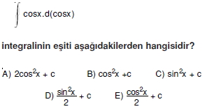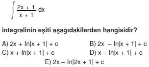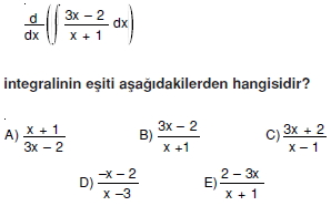 AYT Matematik – Belirsiz İntegral Soruları ( Test 1 )