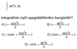 Belirsiz İntegral Soruları ( Test 1 )