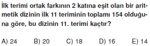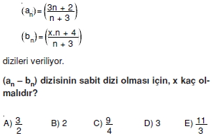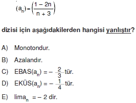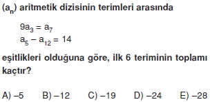 AYT Matematik – Diziler ve Seriler İle İlgili Sorular (Testi 1 )