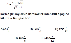 Karmaşık Sayılar Çözümlü Sorular (Testi 2)