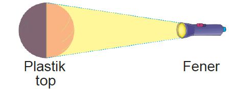 Deneyde topun aydınlık kısmı gündüzü, ışık almayan kısmı ise geceyi temsil eder. Bu sonuçlar doğrudur. Ancak deneydeki plastik top Güneş’i değil Dünya’yı temsil eder. Deney’de Güneş’i fener temsil eder.