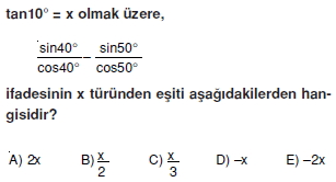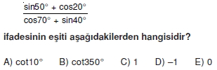 AYT Matematik – Trigonometri – II Soruları (Test 3 )