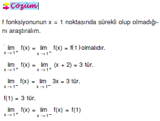olduğundan f fonksiyonu x = 1 noktasında süreklidir. f fonksiyonunun x = 1 noktasında sağdan ve soldan türevlerini araştıralım.