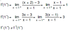 olduğundan f fonksiyonunun x = 1 noktasında türevi yoktur.