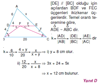 Üçgende Benzerlik Çözümlü Sorular ( Test – 1 )